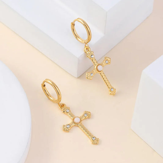 18K Gold Plated 3D Cross Stainless Steel Earrings Set