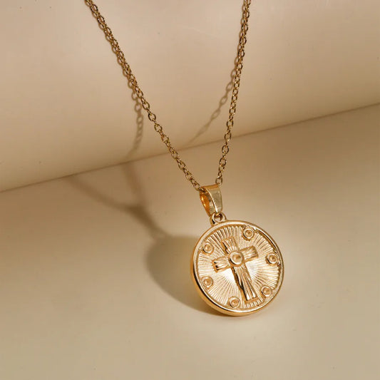 18K Gold-Plated Stainless Steel Cross Tassel Necklace