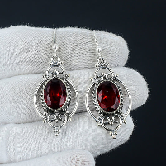 Red Garnet Gemstone Sterling Silver Earrings