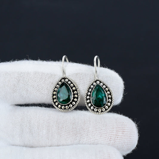 Green Emerald Gemstone 925 Sterling Silver Earrings