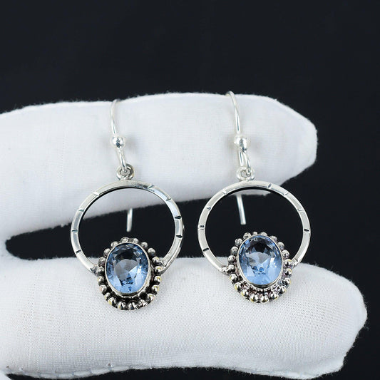 Blue Topaz Gemstone Sterling Silver Dangle Earrings