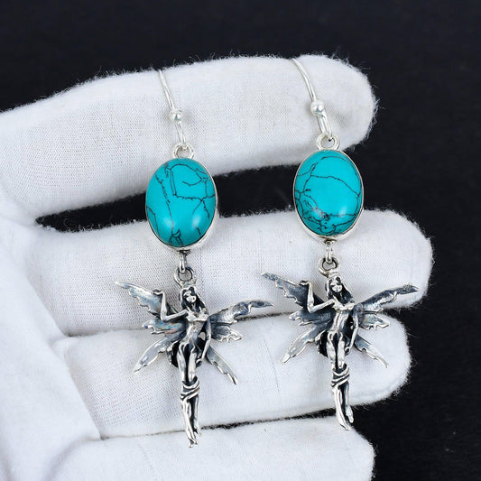 Turquoise Gemstone Silver Dangle Earrings