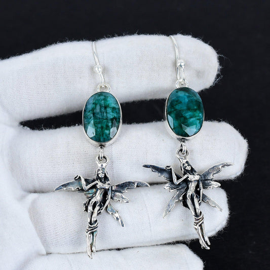 Green Emerald Gemstone Dangle Earrings