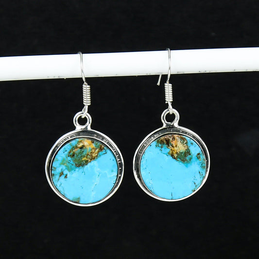 Blue Copper Turquoise Gemstone Heart Hoop Earrings