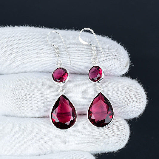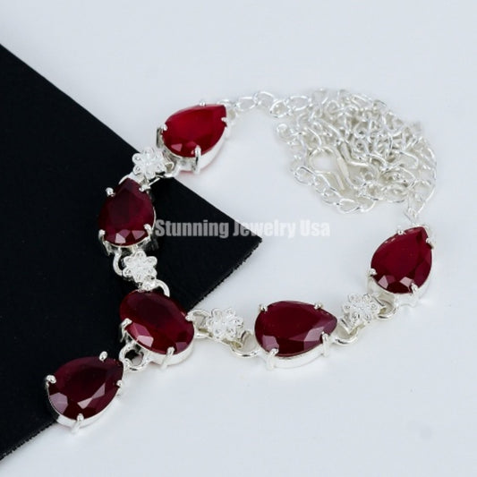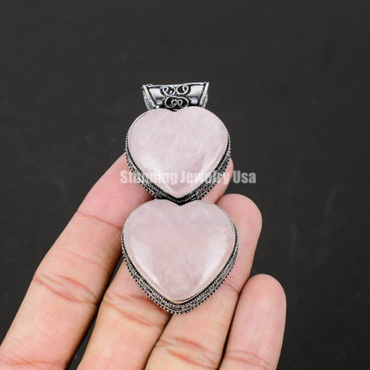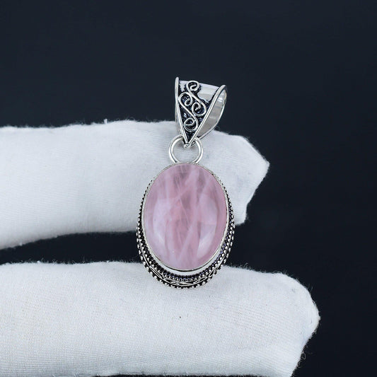 Pink Rose Quartz & Blue Sapphire Sterling Silver Necklace