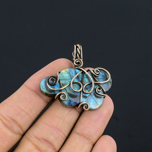 Blue Larimar Gemstone Copper Cuff Bracelet