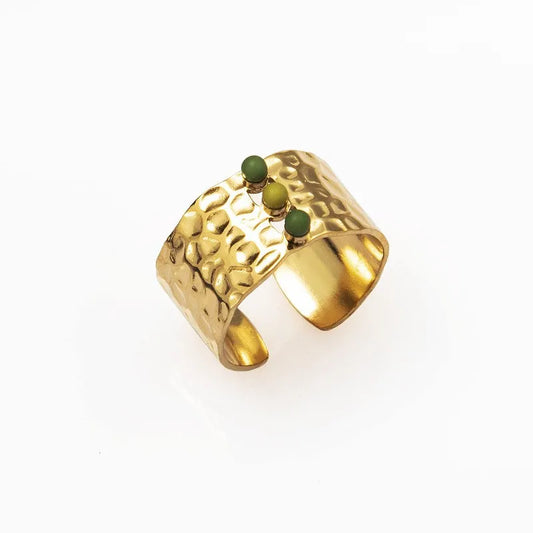 Gold Plated Geometric Natural Stone Open Ring