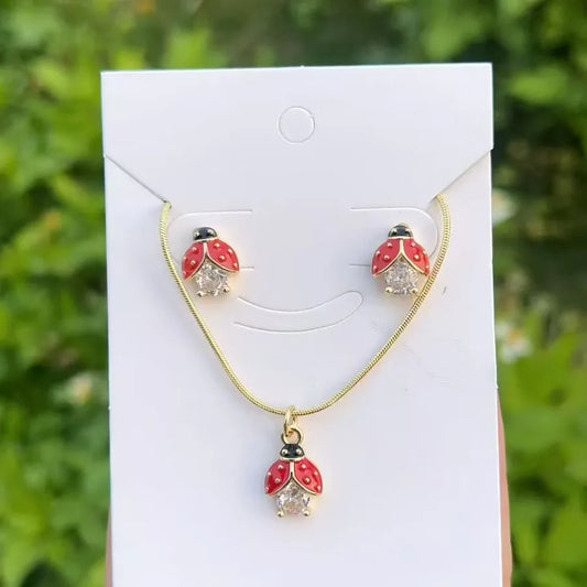 Gold Plated Beetle Zircon Beaded Jewelry Set