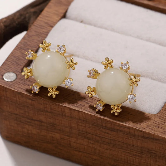 Gold-Plated Copper Heart Pearl Stud Earrings
