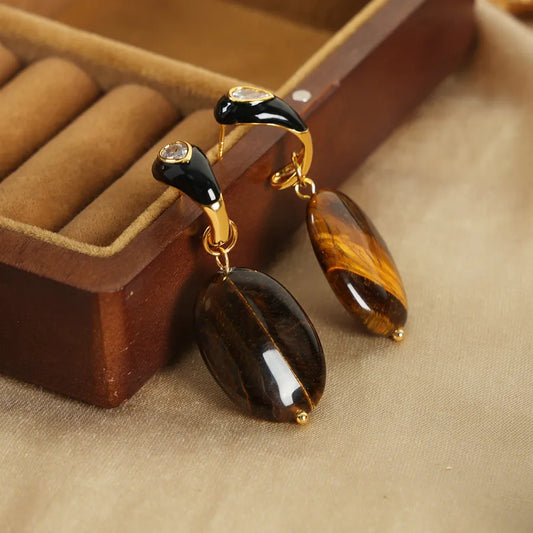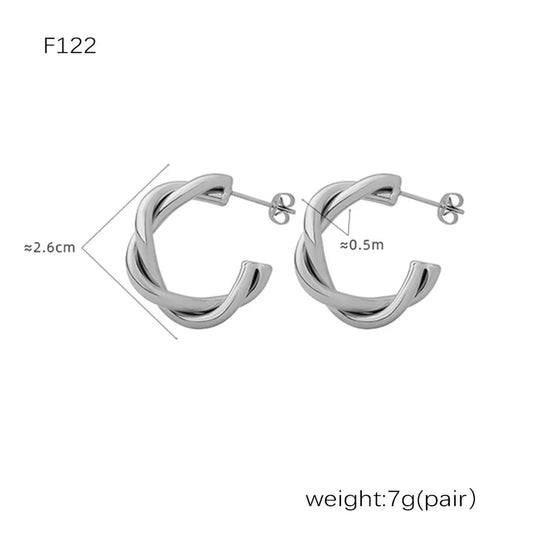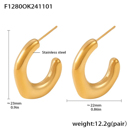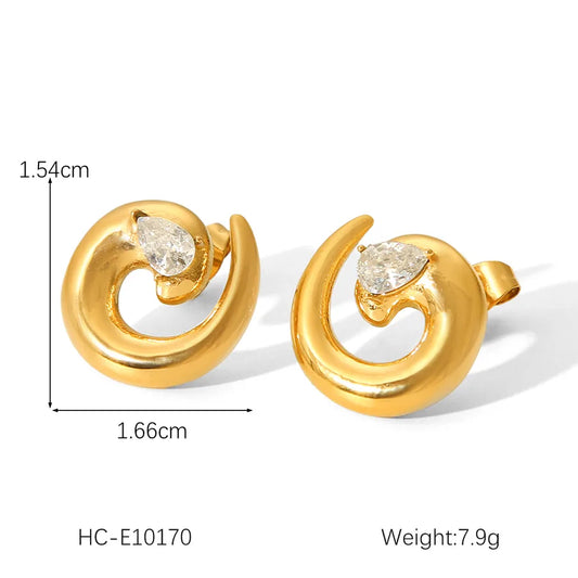 Gold C-Shape Chain Rhinestone Stud Earrings