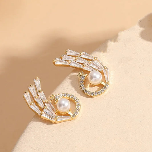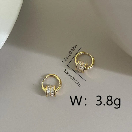 Asymmetrical Gold-Plated Geometric Zircon Earrings