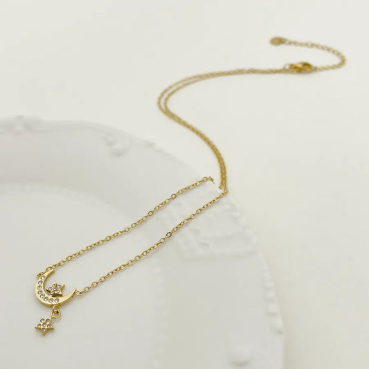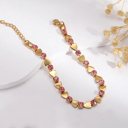 Gold-Plated Heart & Crown Zircon Necklace & Bracelet Set