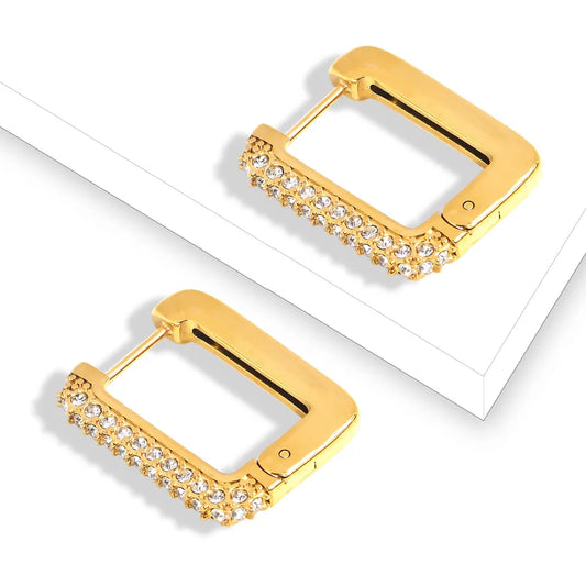 Turquoise Pearl & Zircon Gold U-Shape Earrings