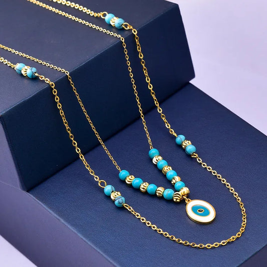 Gold Oval Evil Eye Beaded Necklace & Bracelet Set