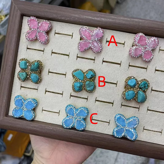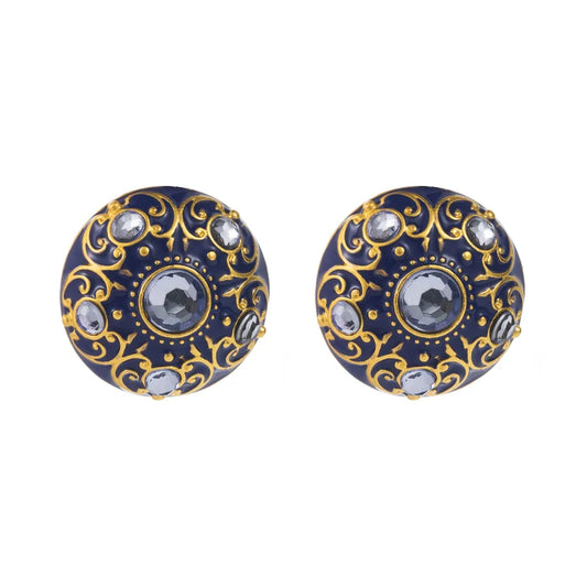 Gold Enamel Rhinestone Stud Earrings