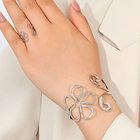 Gold Floral Ring & Bangle Set