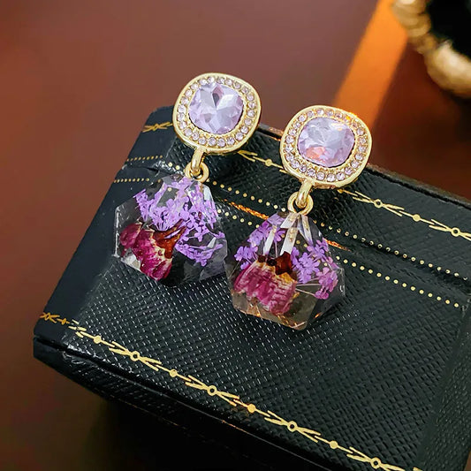 Gold Flower Rhinestone Earrings