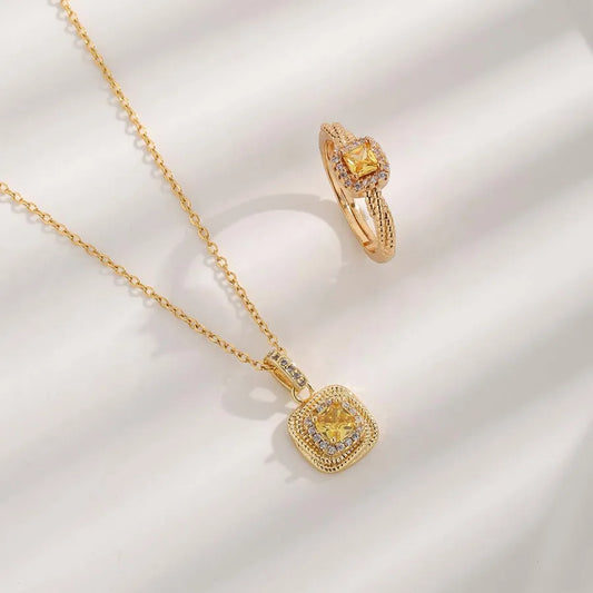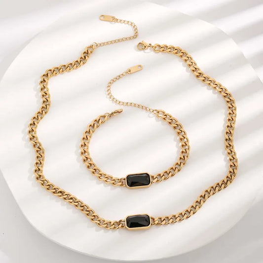 Gold Zircon Necklace & Bracelet Set