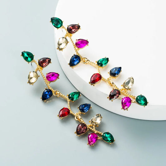 Gold Rhinestone Teardrop Stud Earrings