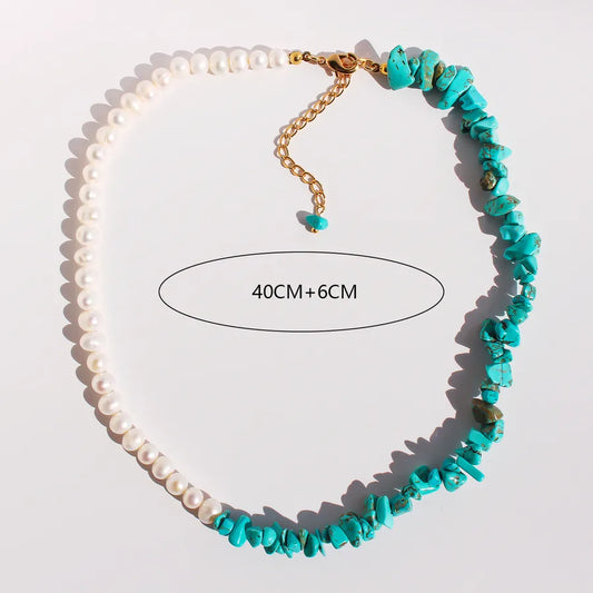 Gold-Plated Freshwater Pearl & Natural Stone Necklace