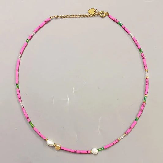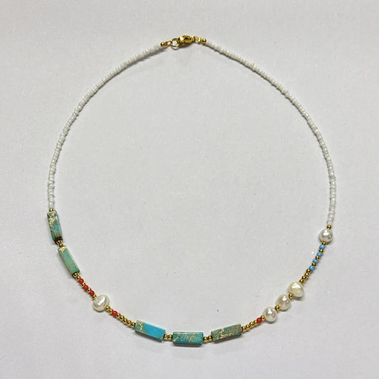 Gold Plated Freshwater Pearl & Natural Stone Beaded Necklace