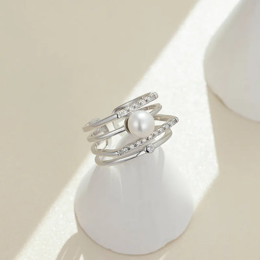 Dual-Tone Gold Plated Freshwater Pearl Open Geometric Ring