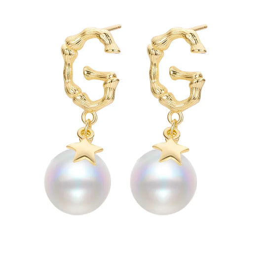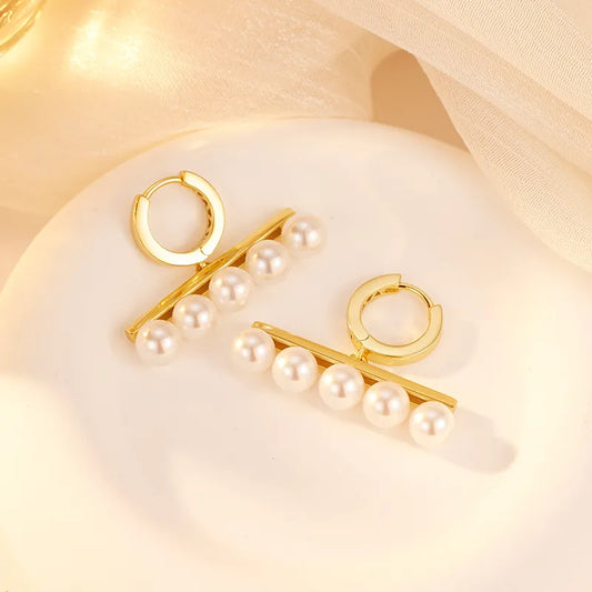 Gold & White Pearl Zircon Geometric Drop Earrings