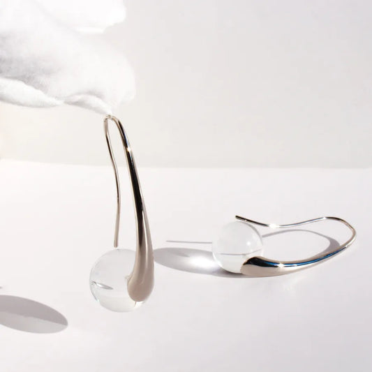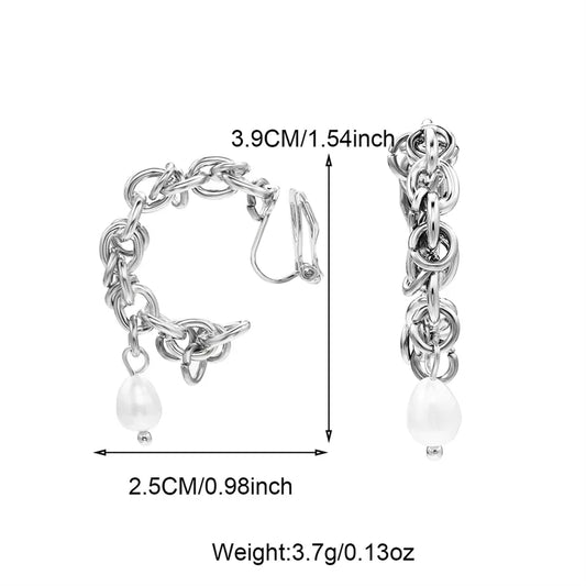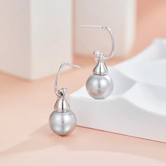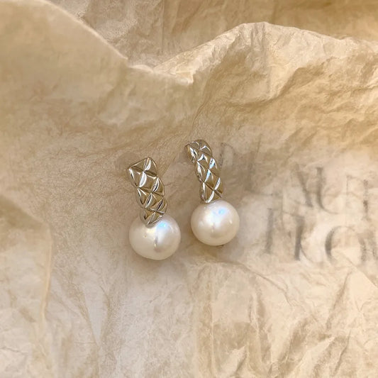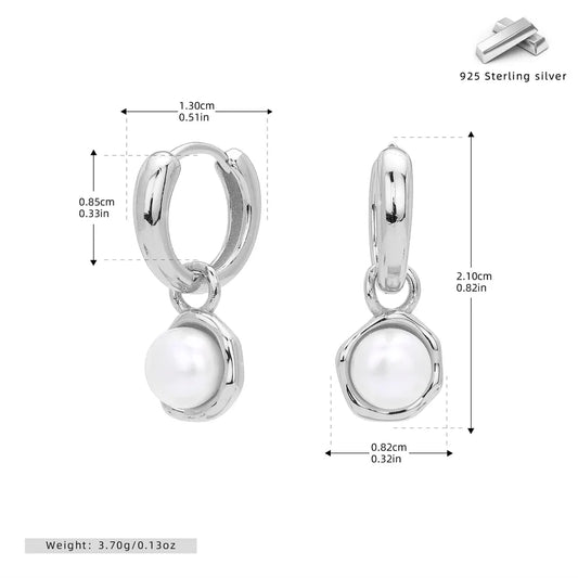 White Gold-Plated Sterling Silver Geometric Shell Pearl Drop Earrings