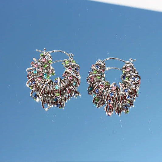 Gold & White Gold Pearl Zircon Geometric Stud Earrings