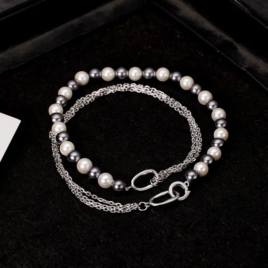 White Gold-Plated Baroque Crystal & Pearl Pendant