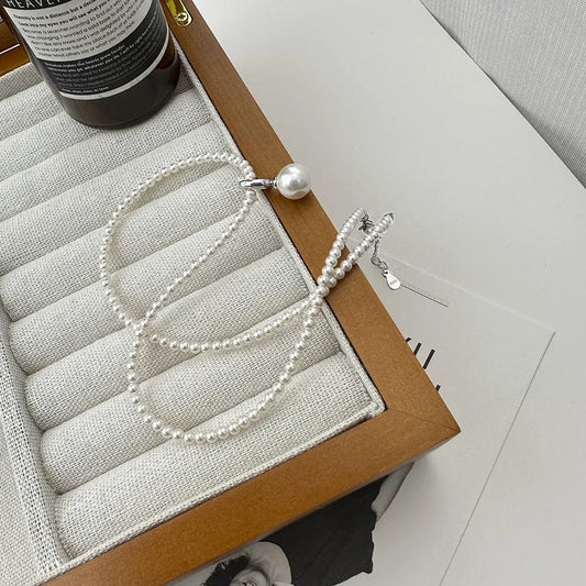 14K Gold White Freshwater Pearl Clavicle Necklace