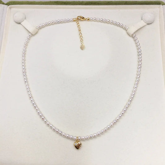 Gold Brass Devil’s Eye Heart Pearl Necklace