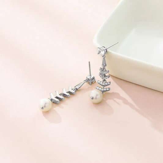 White Gold Plated Pearl & Zircon Tortoise Drop Earrings