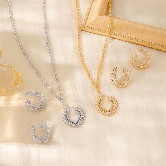 18K Gold Plated Geometric Zircon Jewelry Set
