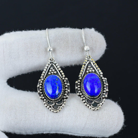 Blue Lapis Lazuli 925 Sterling Silver Earrings