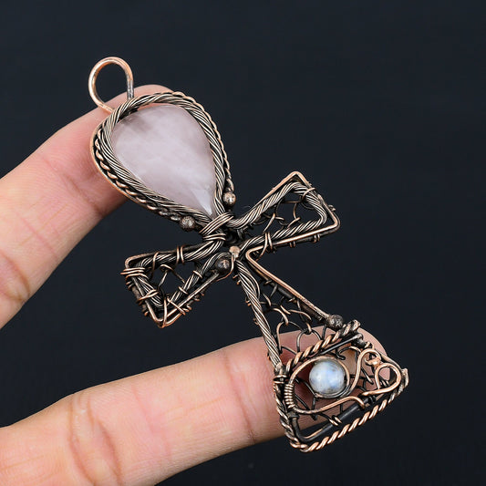 Rose Quartz Gemstone Copper Wrapped Pendant