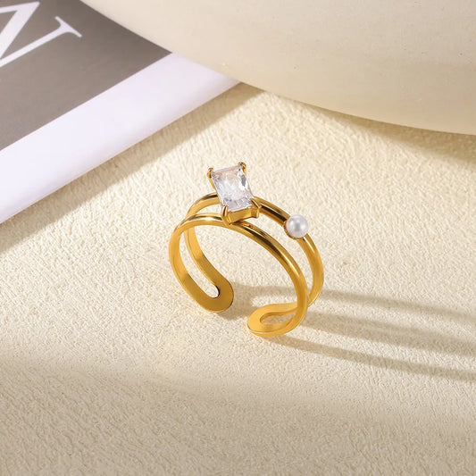 Geometric Gold-Plated Zircon Ring