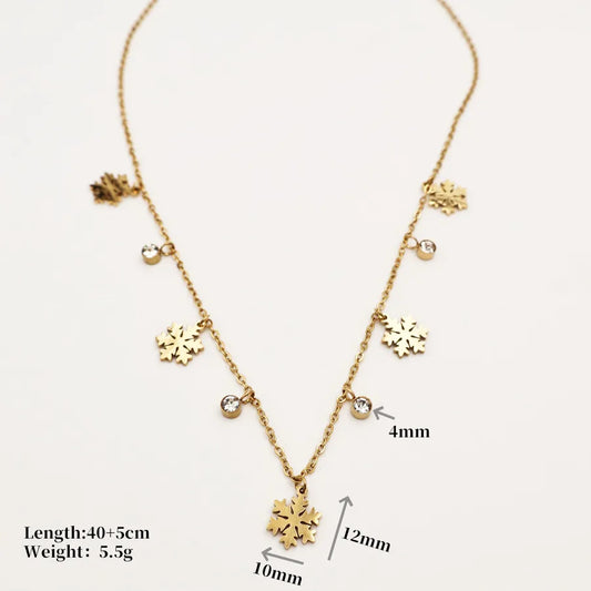 Gold Snowflake Rectangle Zircon Necklace