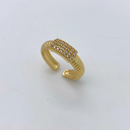 Gold Wave Crown Zircon Open Ring