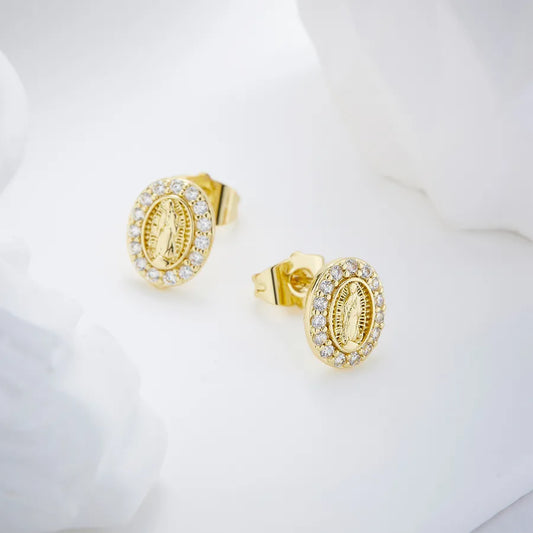 Virgin Mary Gold-Plated Zircon Stud Earrings