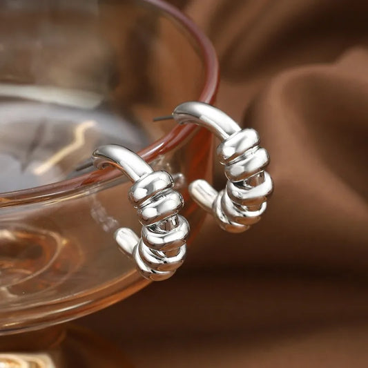 925 Sterling Silver Geometric Stud Earrings – Silver