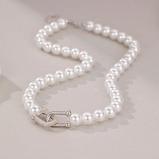 Pricilla Diamond & Pearl Clavicle Necklace Set