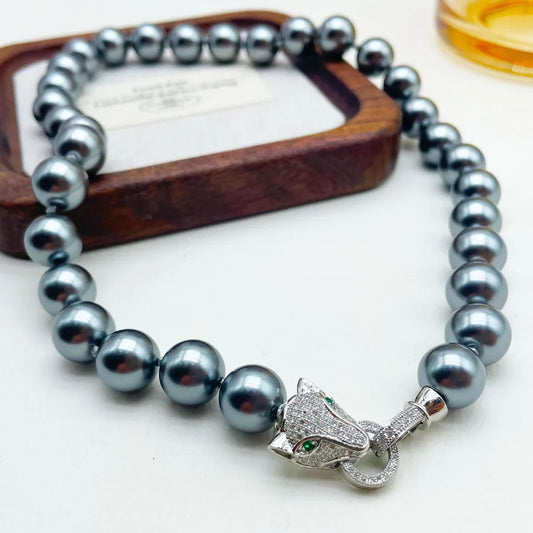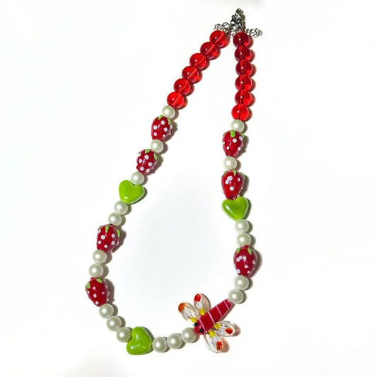 Gold Brass Devil’s Eye Heart Pearl Necklace