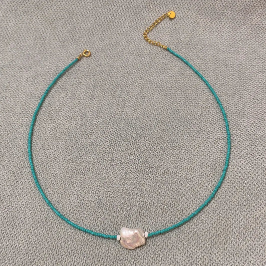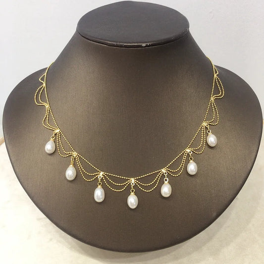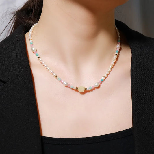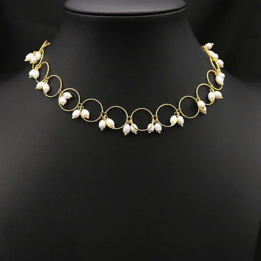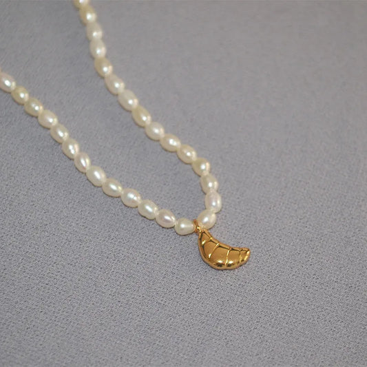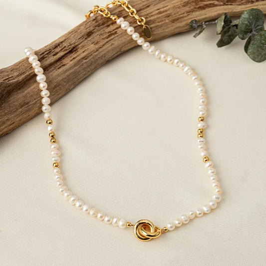 Gold-Plated Geometric Freshwater Pearl Necklace