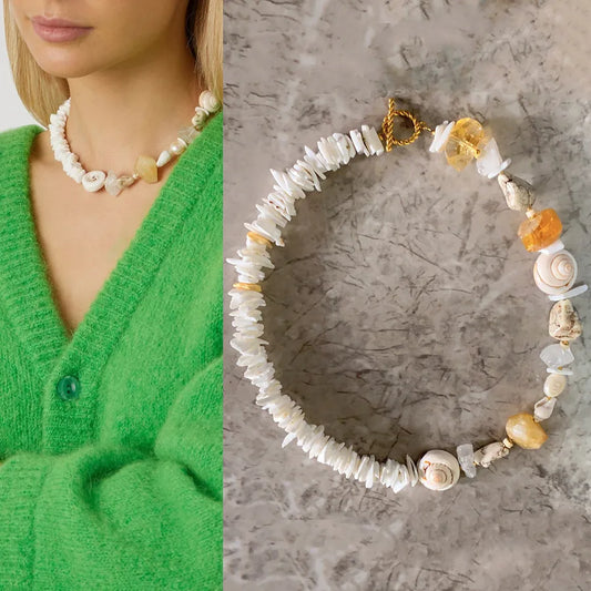 Gold Starfish Spiral Shell Pearl Necklace Set