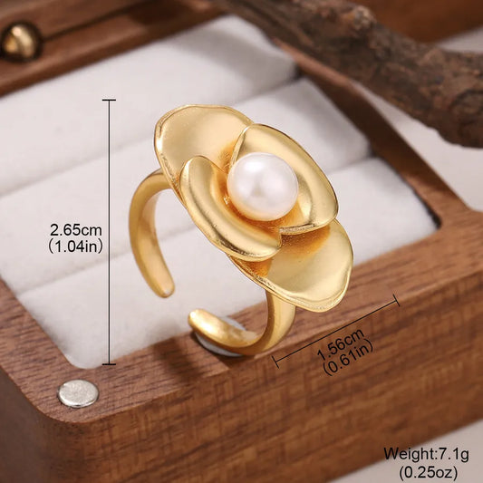 Gold Geometric Flower Pearl Ring