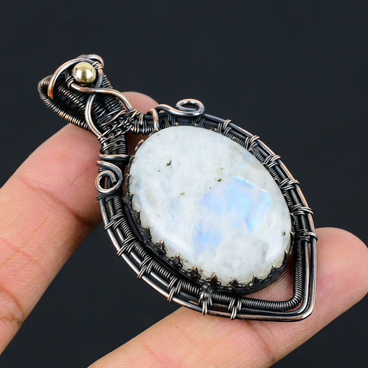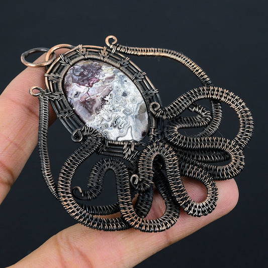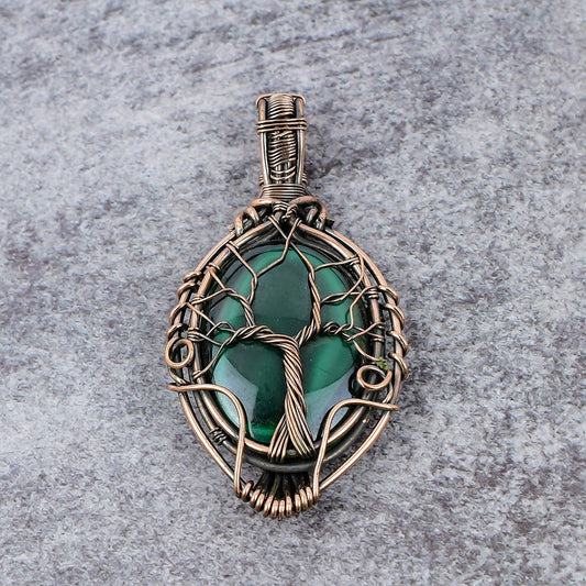 Peacock Aura Druzy Gemstone Tree of Life Moon Pendant