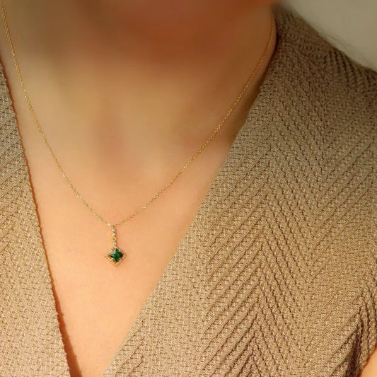 925 Sterling Silver Zircon Epoxy Plating Inlay Pendant Necklace