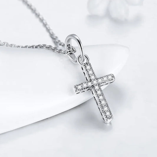 925 Sterling Silver Plated Zircon cable chain Handmade Polishing Inlay Cross Pendant Necklace