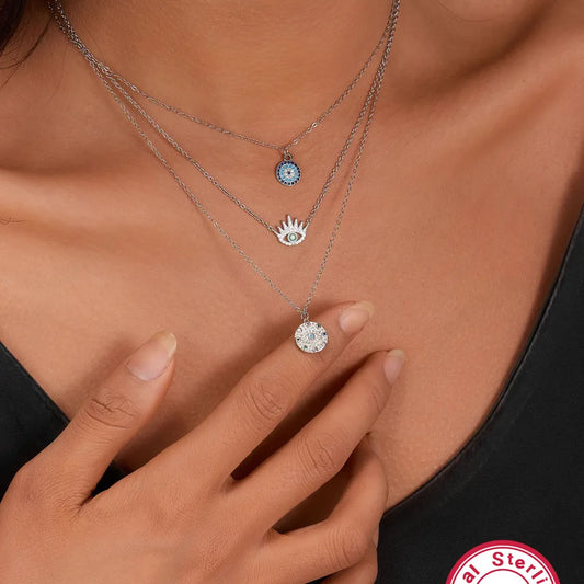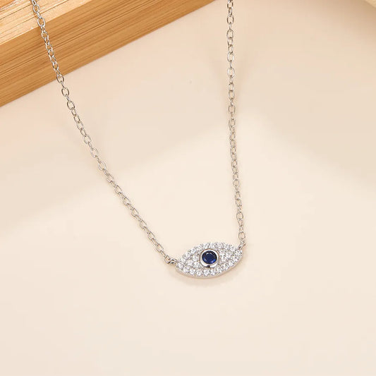 925 Sterling Silver Zircon Plating Inlay Devil'S Eye Pendant Necklace